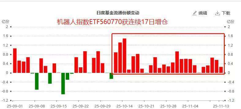 机器人指数ETF(560770)作为布局机器人产业的高效工具,在政策支持明确、技术突破频现、应用场景加速落地的多重利好驱动下,持续获得资金青睐。随着人工智能技术的快速发展和应用场景的不断拓展,机器人产业有望迎来新的发展机遇。